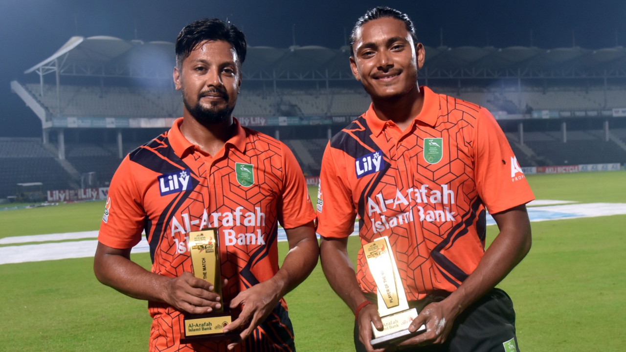 ঠিক তখনই মাঠে নেমে রূপকথা লিখে ফেললেন দুই শেষদিকের ব্যাটার অভিষেক দাস ও নাহিদুল ইসলাম। ইনজুরি কাটিয়ে ফেরা অভিষেক নিজের নামের পাশে ১১ বলে ২৭ রান তুললেন ৩ ছক্কা ও ২ চারে, আর নাহিদুল খেললেন ৯ বলে ২১ রানের ইনিংস।