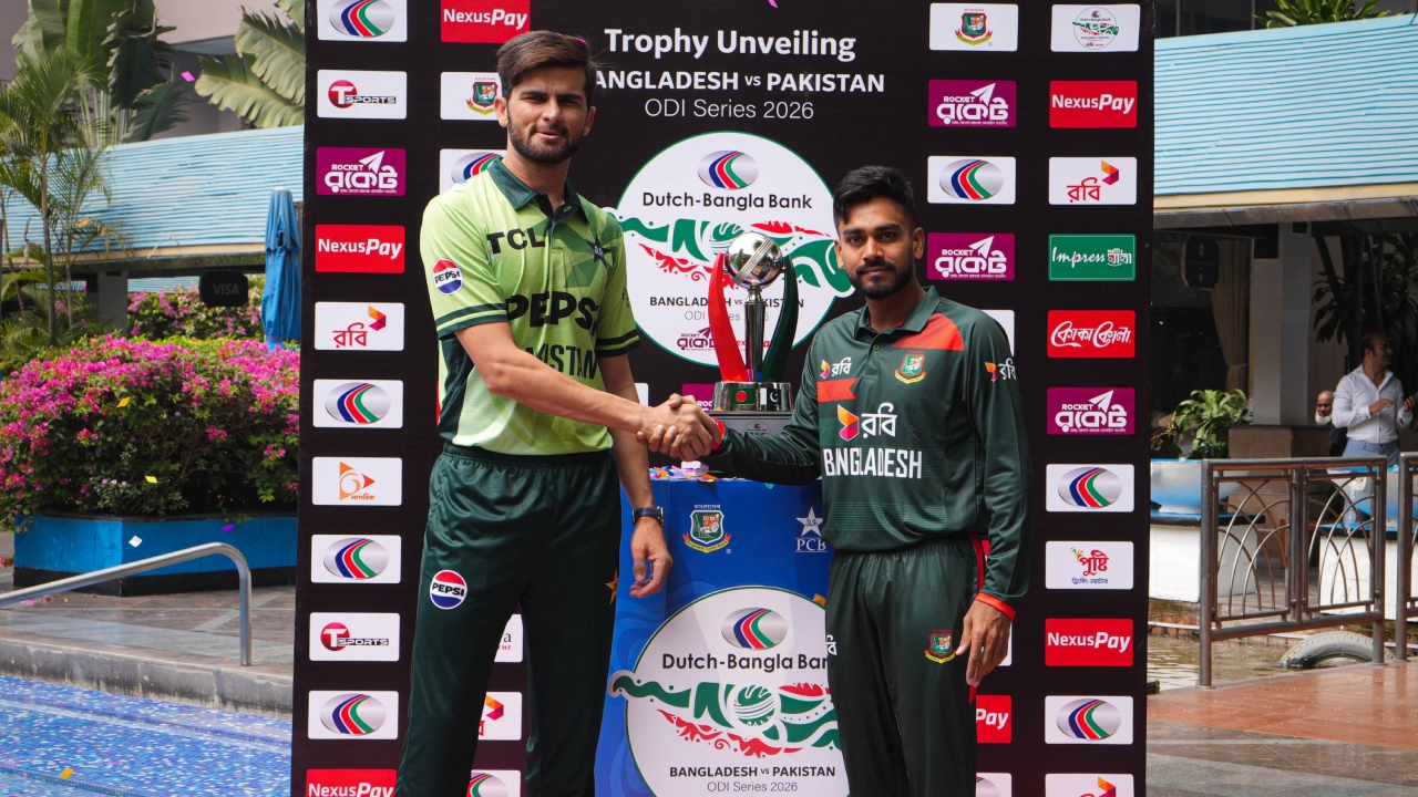 বাংলাদেশ ও পাকিস্তানের মধ্যকার তিন ম্যাচের ওয়ানডে সিরিজকে সামনে রেখে আনুষ্ঠানিকভাবে ট্রফি উন্মোচন করা হয়েছে। মঙ্গলবার ঢাকায় আয়োজিত অনুষ্ঠানে দুই দলের অধিনায়ক মেহেদী হাসান মিরাজ ও শাহীন শাহ আফ্রিদি উপস্থিত থেকে ট্রফি উন্মোচন করেন। এর মধ্য দিয়ে বহুল প্রতীক্ষিত এই সিরিজের আনুষ্ঠানিক সূচনা হলো।